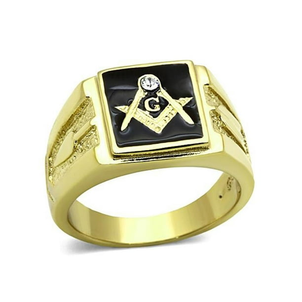 Men S Stainless Steel 14k Gold Ion Plated Crystal Masonic Lodge Freemason Ring Size 9 Walmart Com